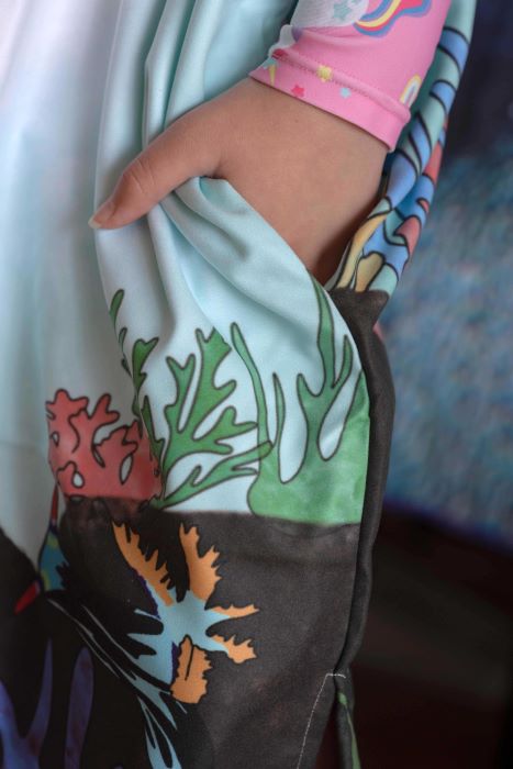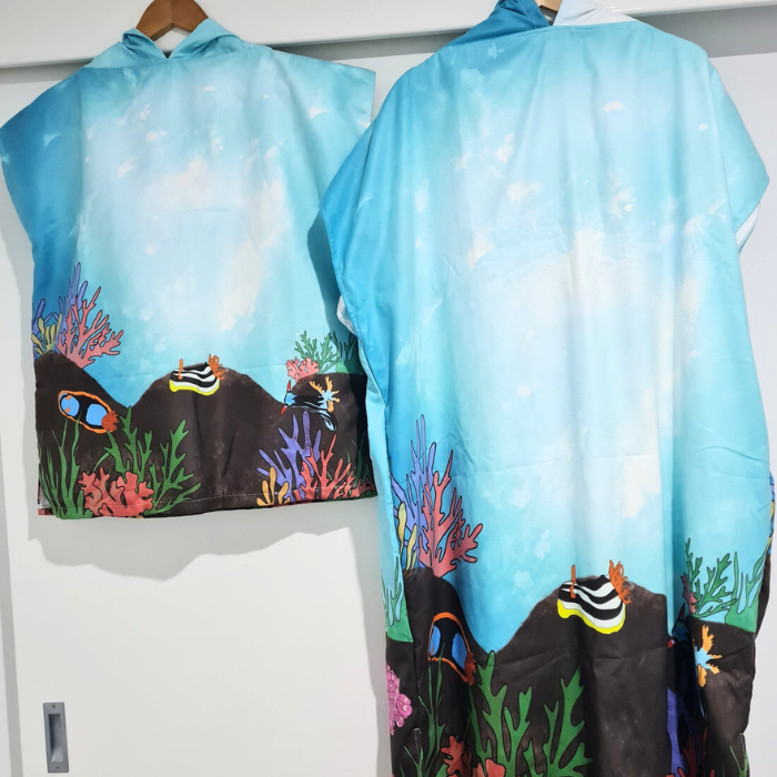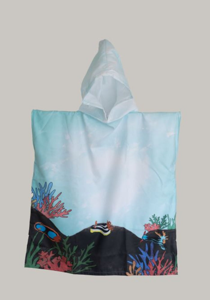 But that's not all—our Kids Turquoise Nudibranch Hooded Towel is not only soft and stylish, but it's also eco-friendly. Made from RPET fabric, which is created by recycling plastic bottles, this hooded towel helps reduce waste and contributes to a healthier planet for future generations.