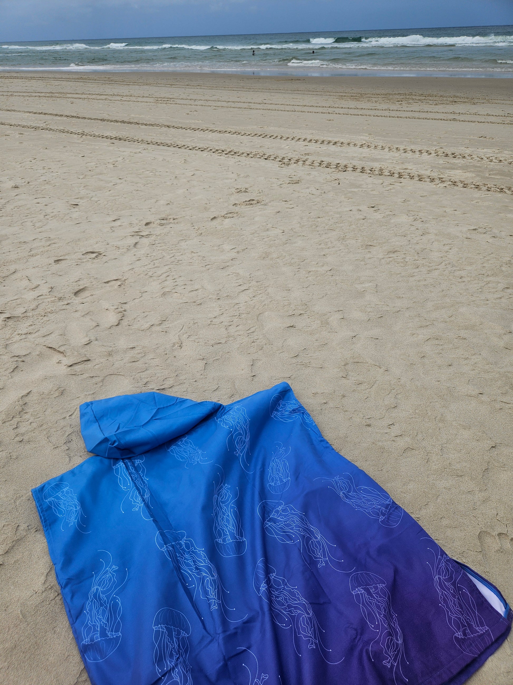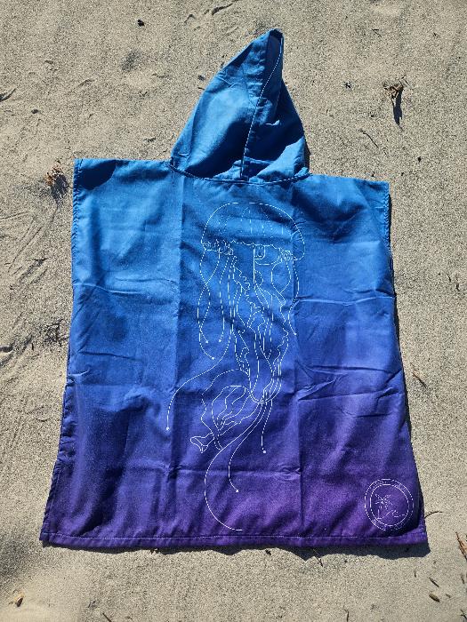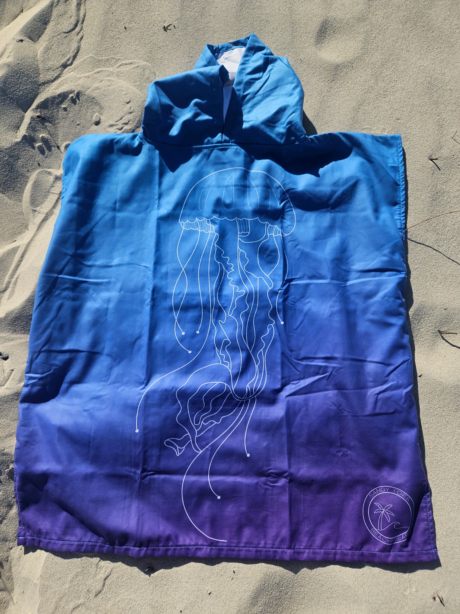Wrap your little ones in the ocean's magic with the Kids Hooded Towel Blue Jellyfish from Sandy Toes Beachwear! Designed for comfort, style, and sustainability, this charming kids hooded beach towel features a whimsical jellyfish design in calming blue tones—perfect for beach days, poolside fun, or bath time.