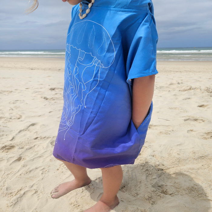 Kids Hooded Towel Blue Jellyfish | Hooded Towel Kids | Sandy Toes Beachwear