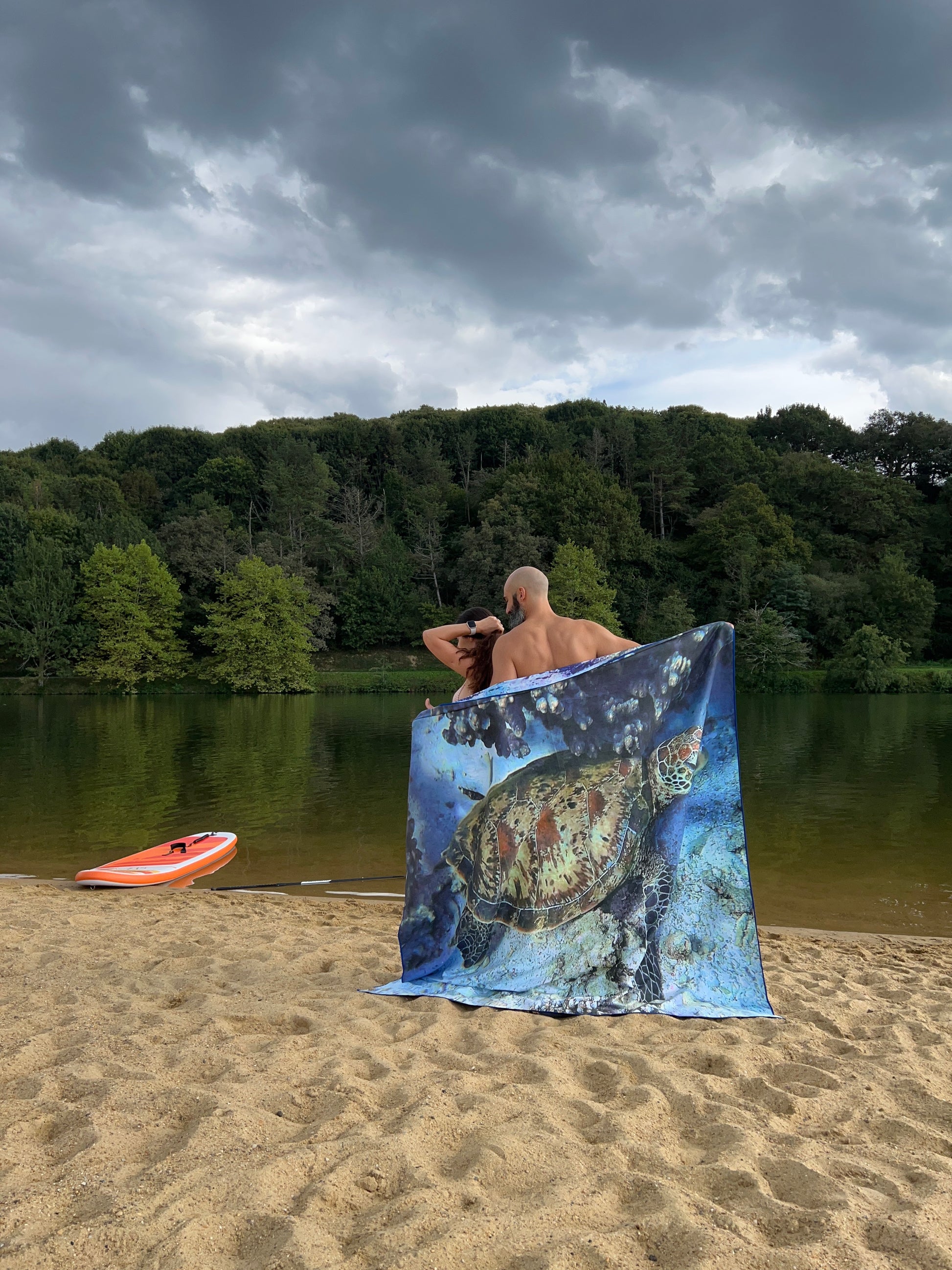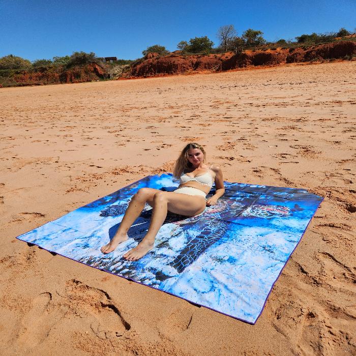 Discover the ultimate practicality and beach luxury combined in our huge Turtle Beach Mat by Sandy Toes Beachwear. We've designed this stunning XL beach mat to be not only a beach blanket, but for many uses including a towel for 2, beach rug, picnic rug or beach mat. Crafted from rPET (recycled plastics), it's the perfect choice for eco-conscious beach lovers who want a sand free beach experience.